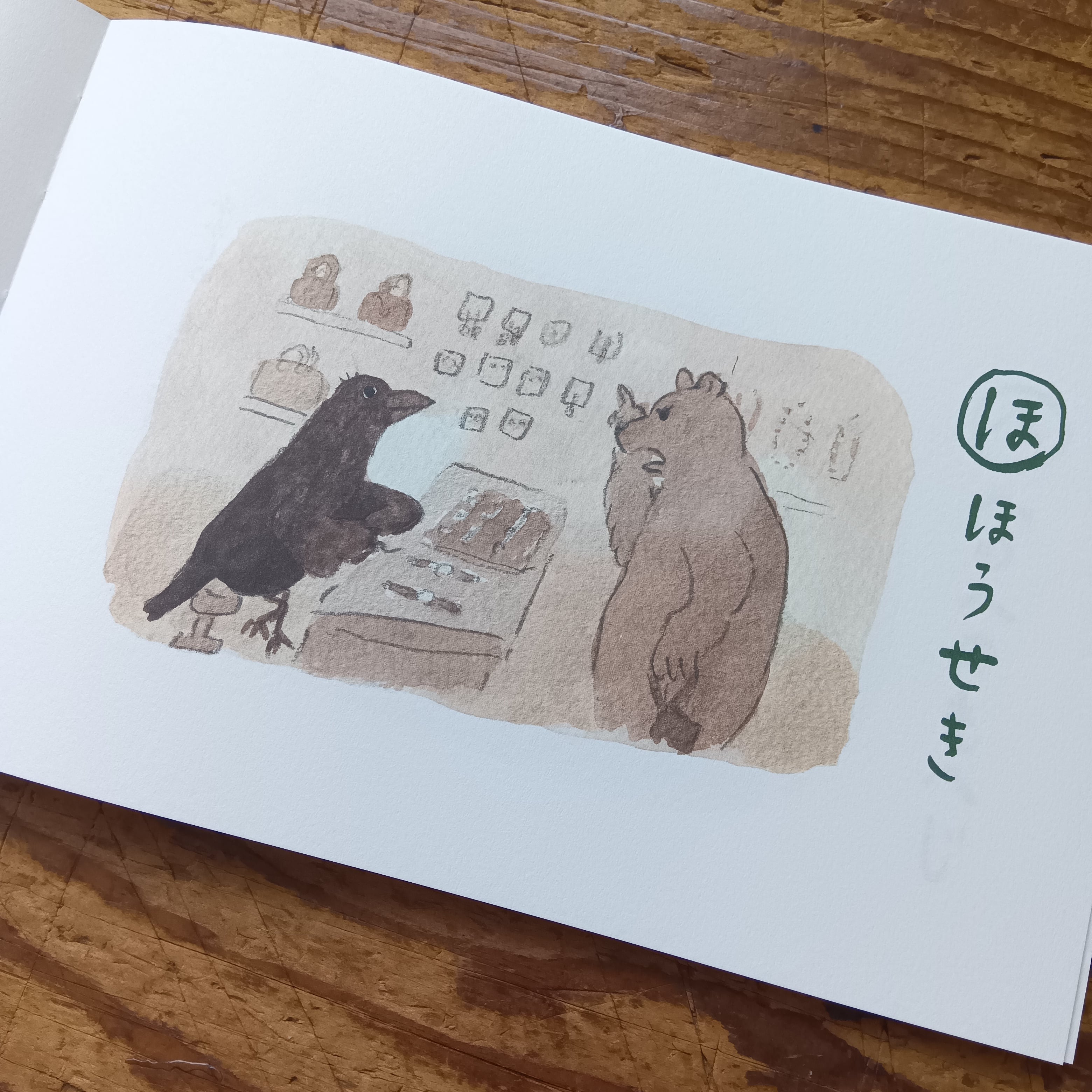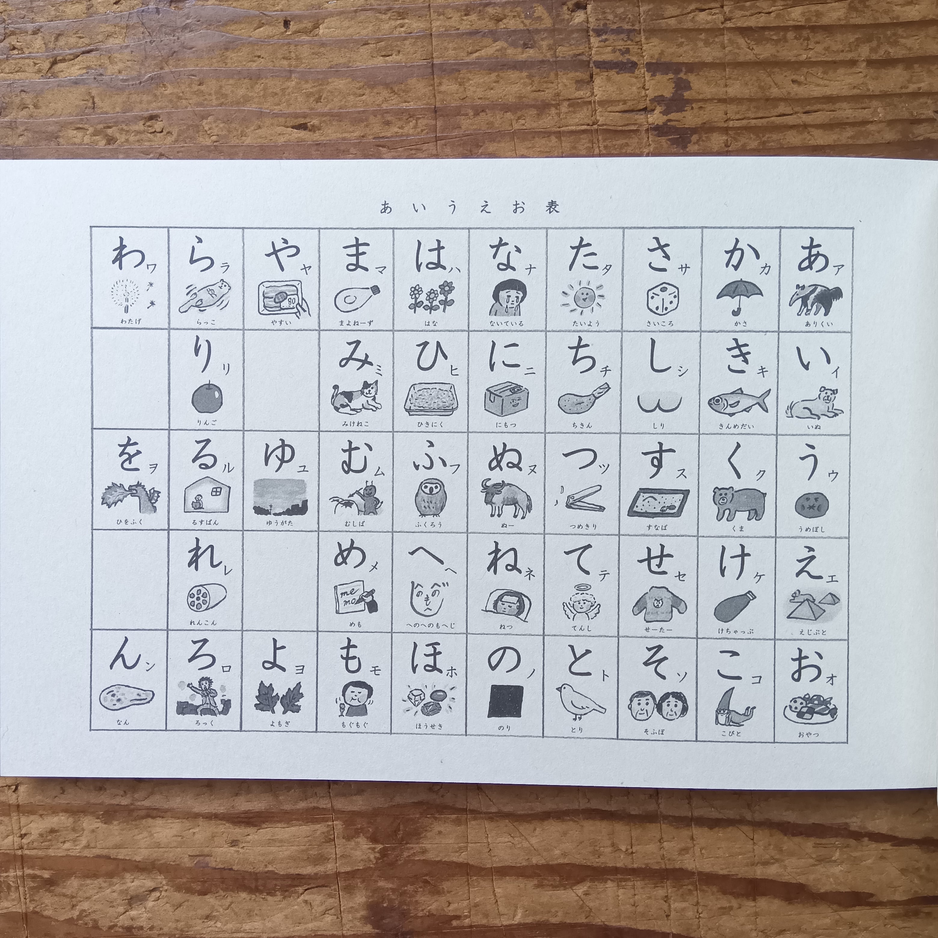 五十音「あ」~「ん」の46文字にそれぞれ短いお話と絵が付いた楽しい一冊です。