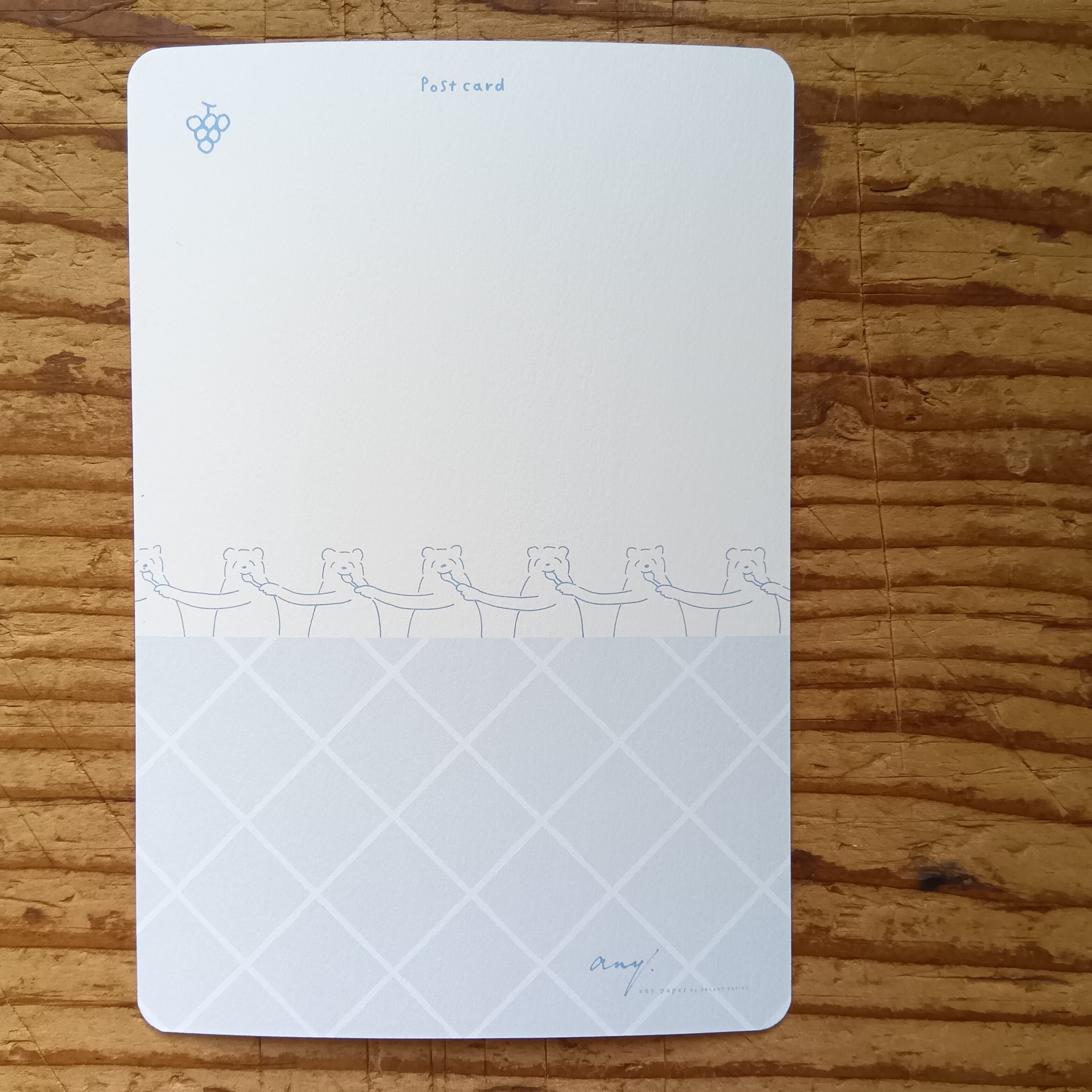 パフェを食べさせ合うクマさんがゆるかわいいポストカードです。