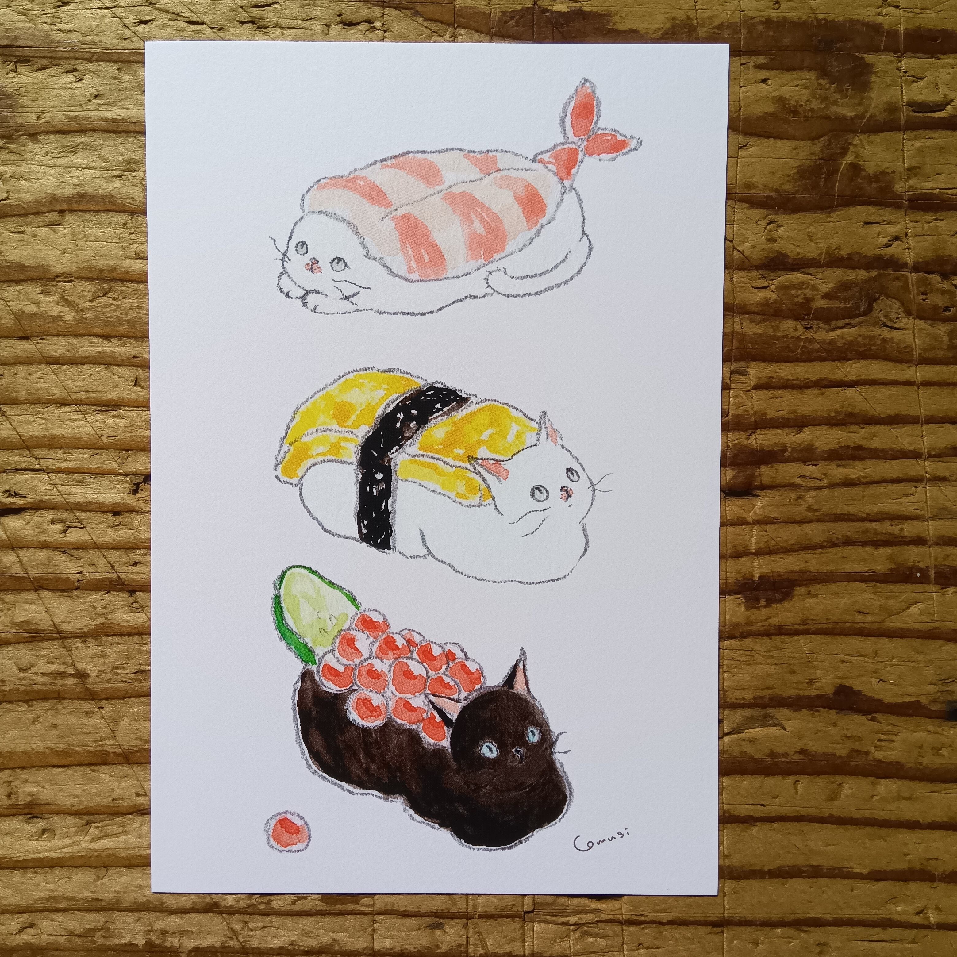 tocorocomugi/ポストカード・お寿司パーティーにゃんこ