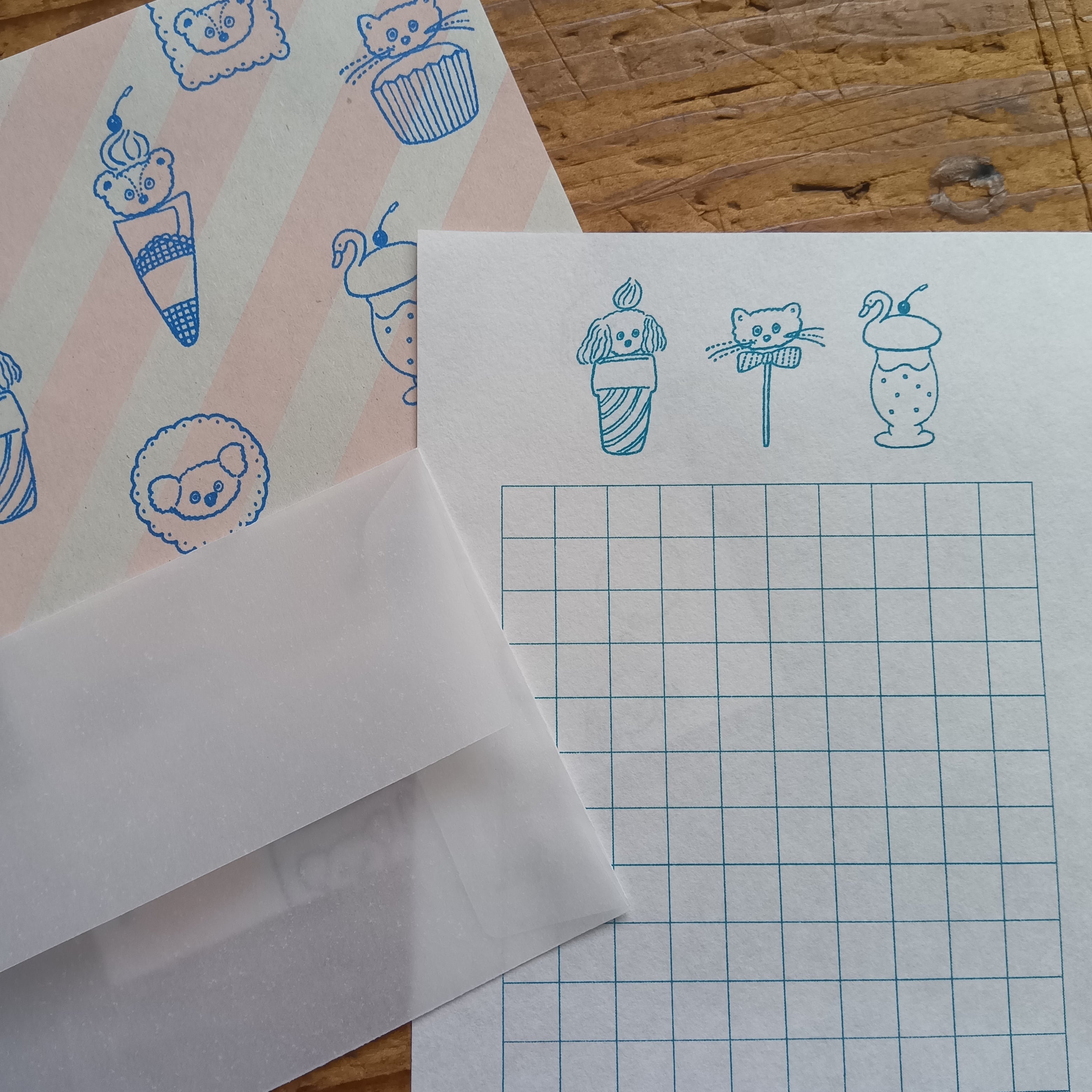 トレーシングペーパーの封筒から便箋の柄が透ける素敵なミニレターセットです。