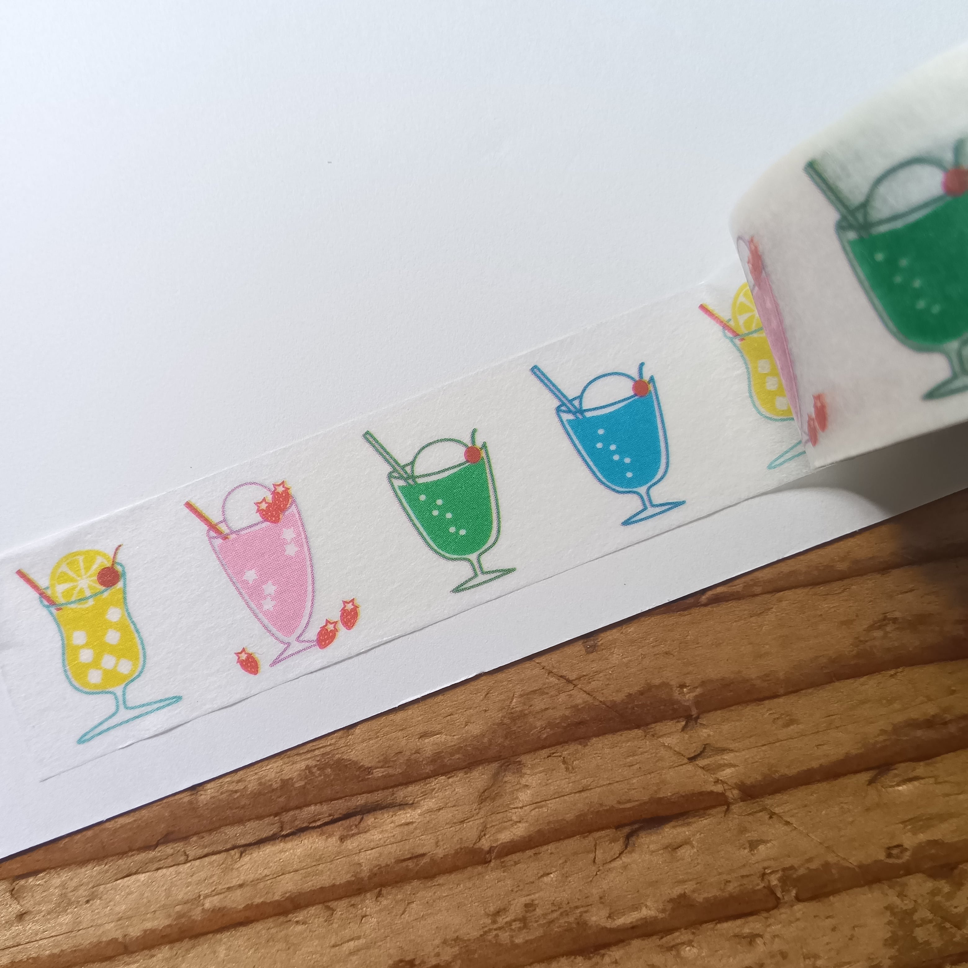 カラフルなドリンクが楽しいマスキングテープです。