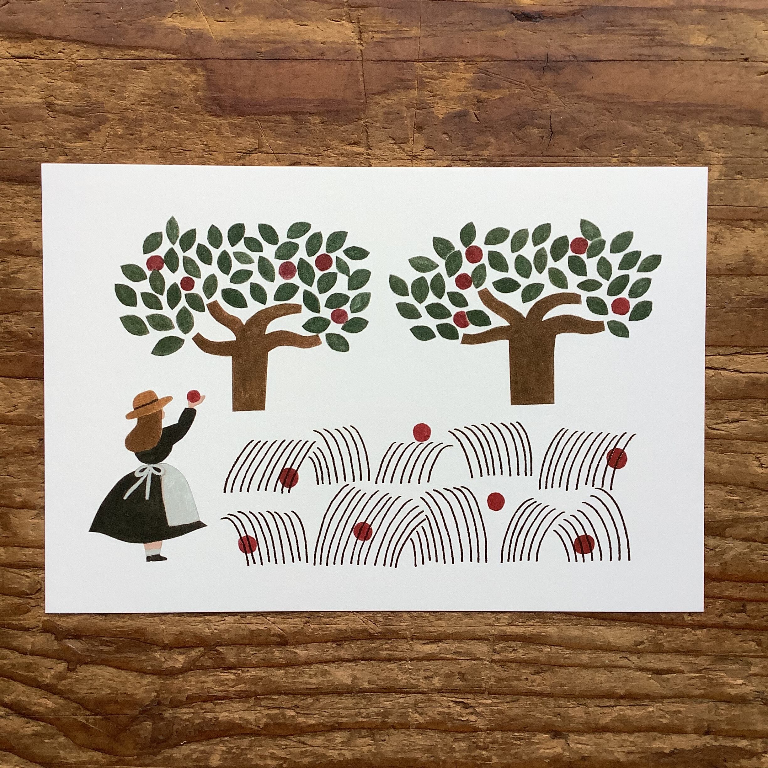 ネクタイ/箔押しポストカード・りんご畑