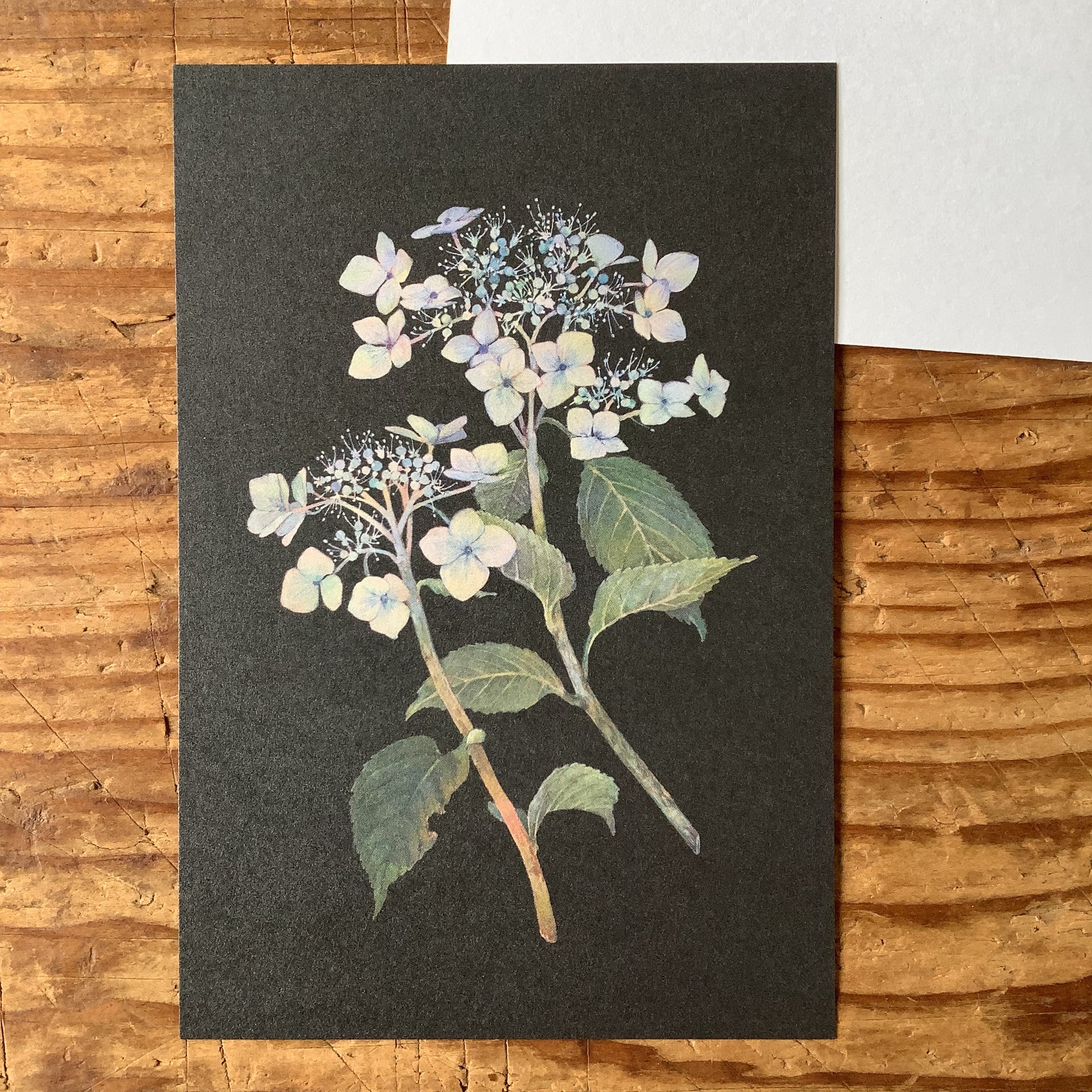 黒い背景に繊細なお花が映えるポストカードです。