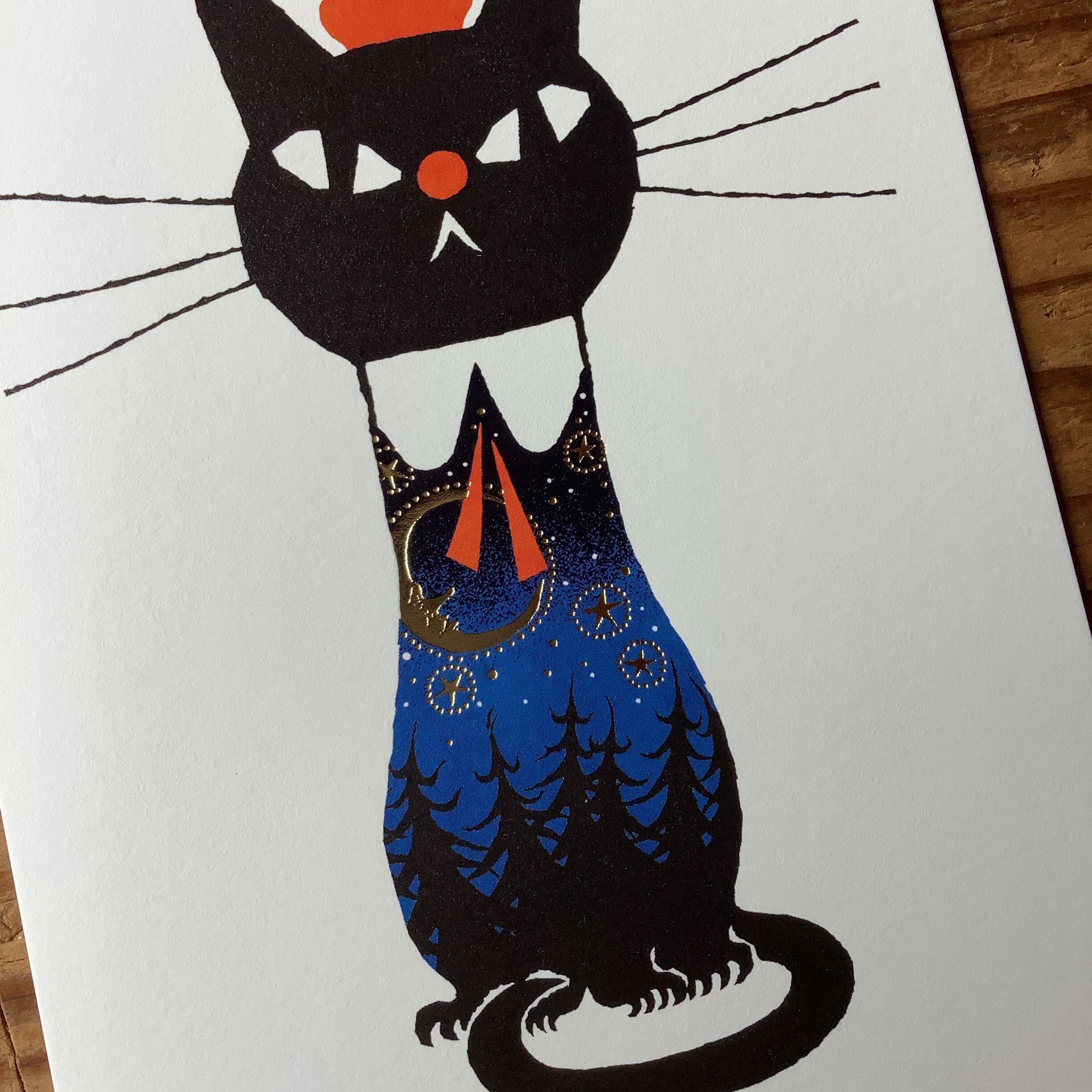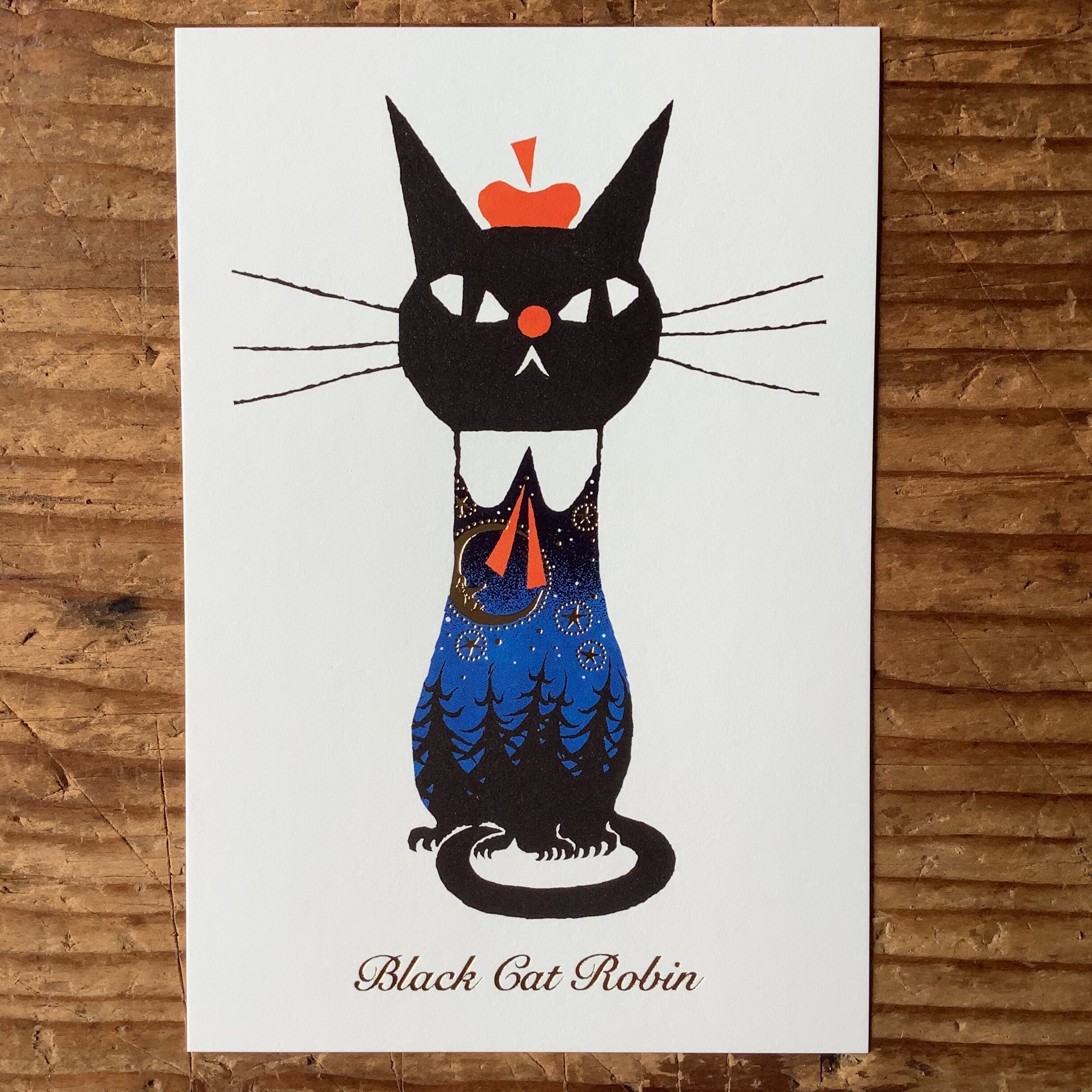 黒ねこ意匠/箔押しポストカード・夜の森