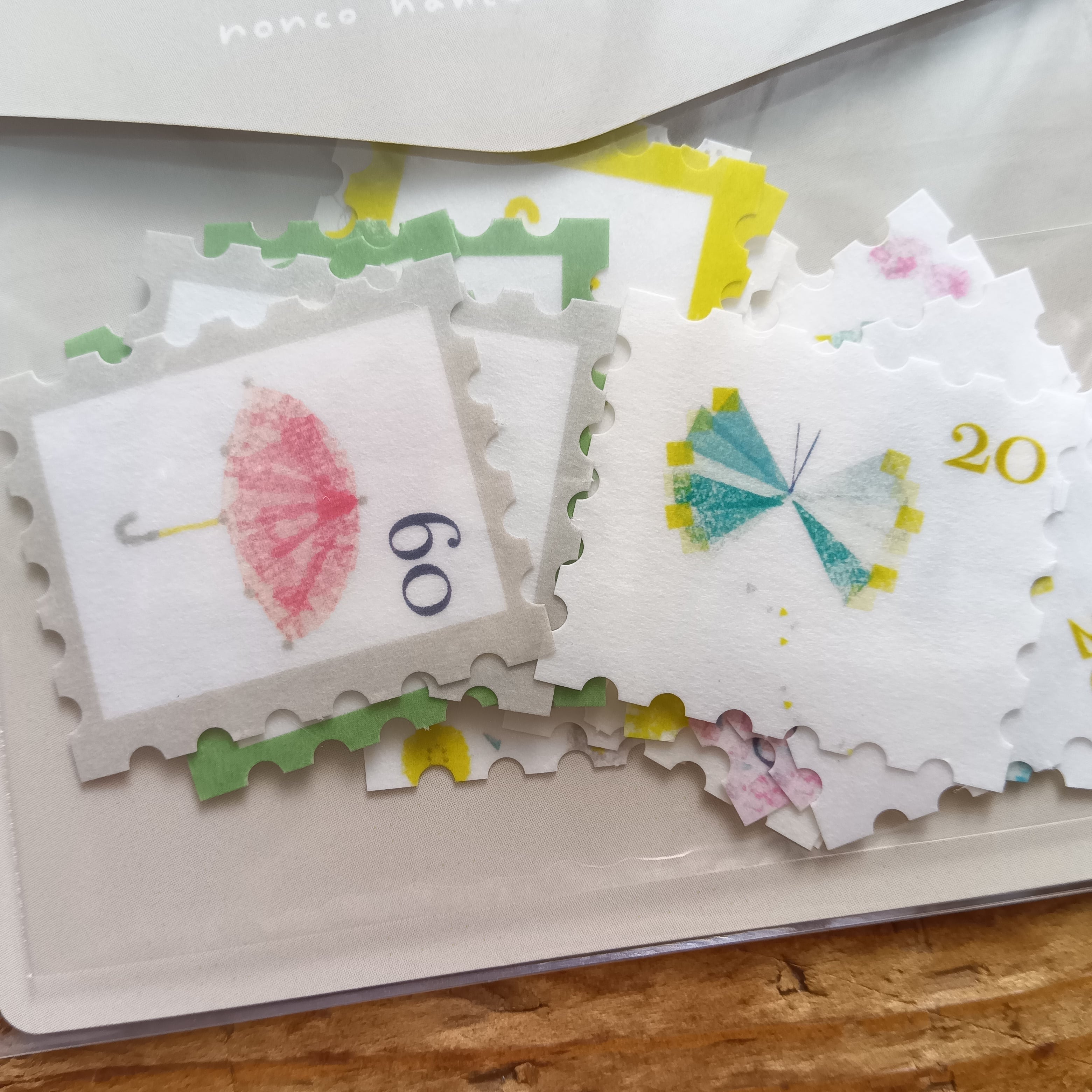 切手風デザインが可愛いフレークシールです。