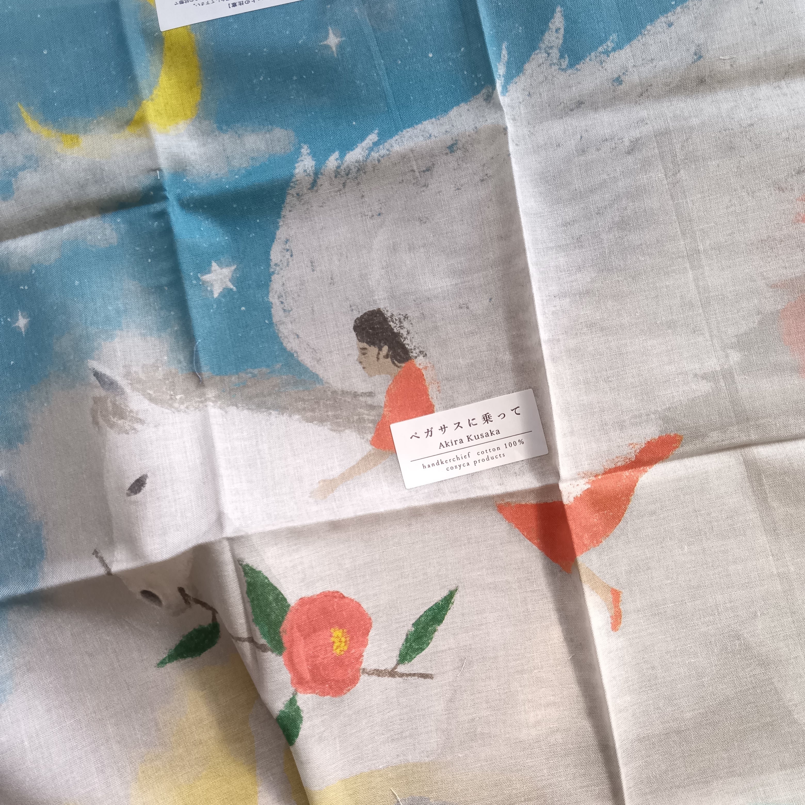 一枚の絵のようなデザインが素敵なハンカチです。